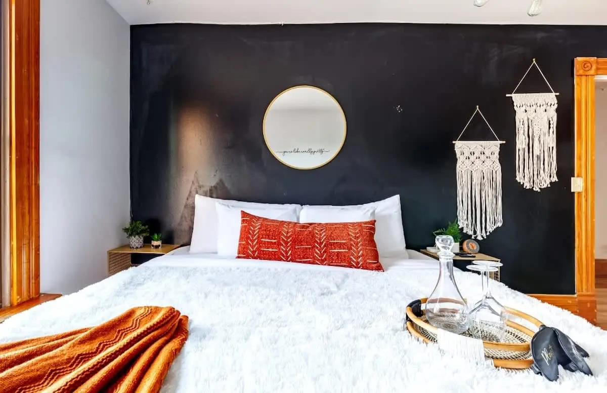 Our home is centrally located downtown and shares a wall with the neighboring unit, so some city or neighbor noise is possible. To ensure a restful stay, we’ve provided white noise machines and fans in every room for light sleepers.