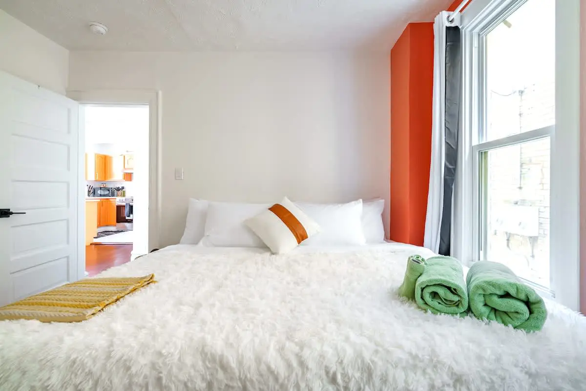 Our home is centrally located downtown and shares a wall with the neighboring unit, so some city or neighbor noise is possible. To ensure a restful stay, we’ve provided white noise machines and fans in every room for light sleepers.