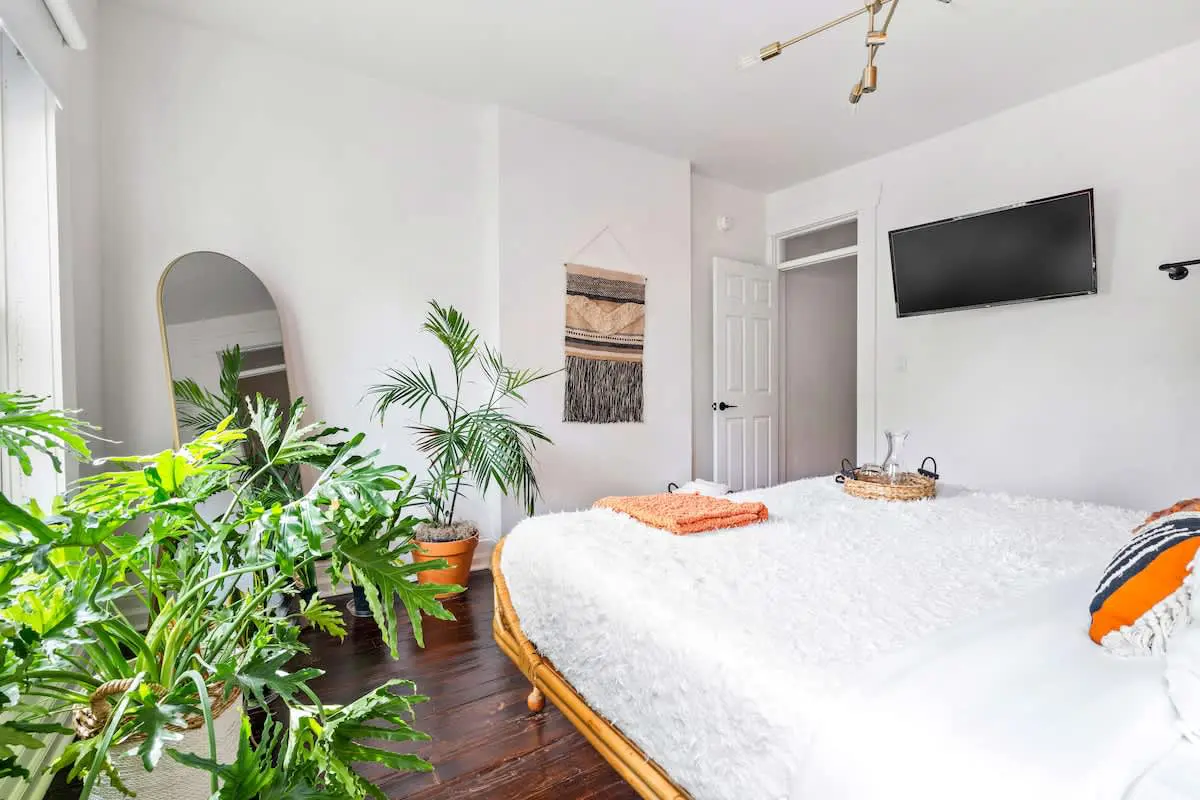Our Jungle House ™ is FILLED with gorgeous rare plants from all over, upscale decor, original hardwood floors on all floors, the comfiest King size bed you will ever sleep on, quartz countertops with a full equipped kitchen, high speed internet, 55-inch Smart TV in the living room with additional Smart TVs in all bedrooms, tower fans & white noise machines for light sleepers, hair dryer & handheld steamer, dryer for your use and much more!
