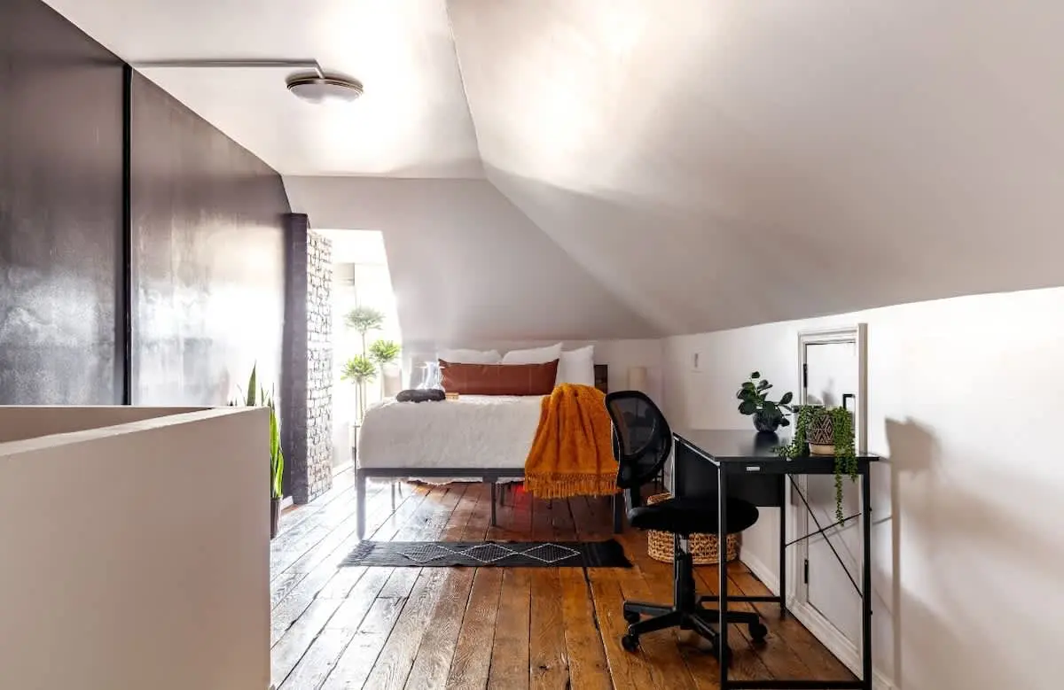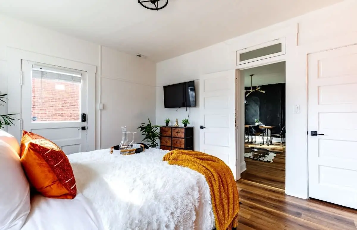 Our home is centrally located downtown and shares a wall with the neighboring unit, so some city or neighbor noise is possible. To ensure a restful stay, we’ve provided white noise machines and fans in every room for light sleepers.