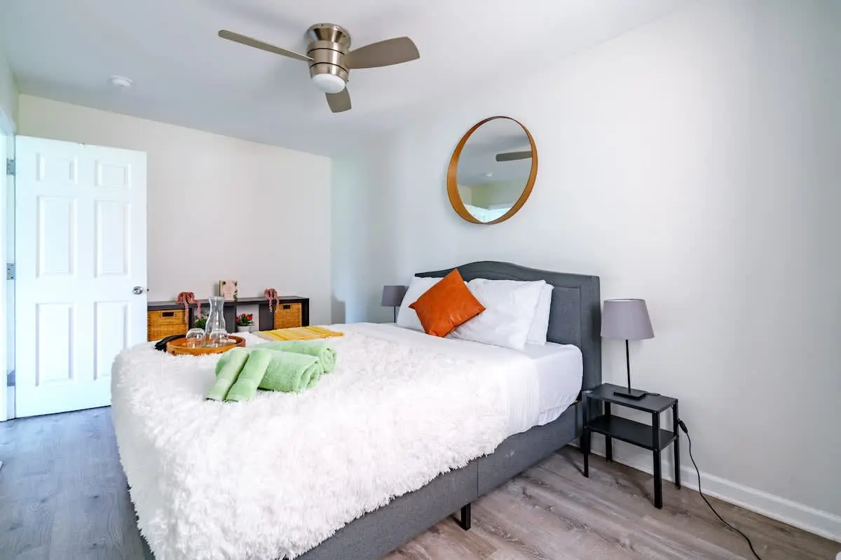 Our home is centrally located downtown and shares a wall with the neighboring unit, so some city or neighbor noise is possible. To ensure a restful stay, we’ve provided white noise machines and fans in every room for light sleepers.