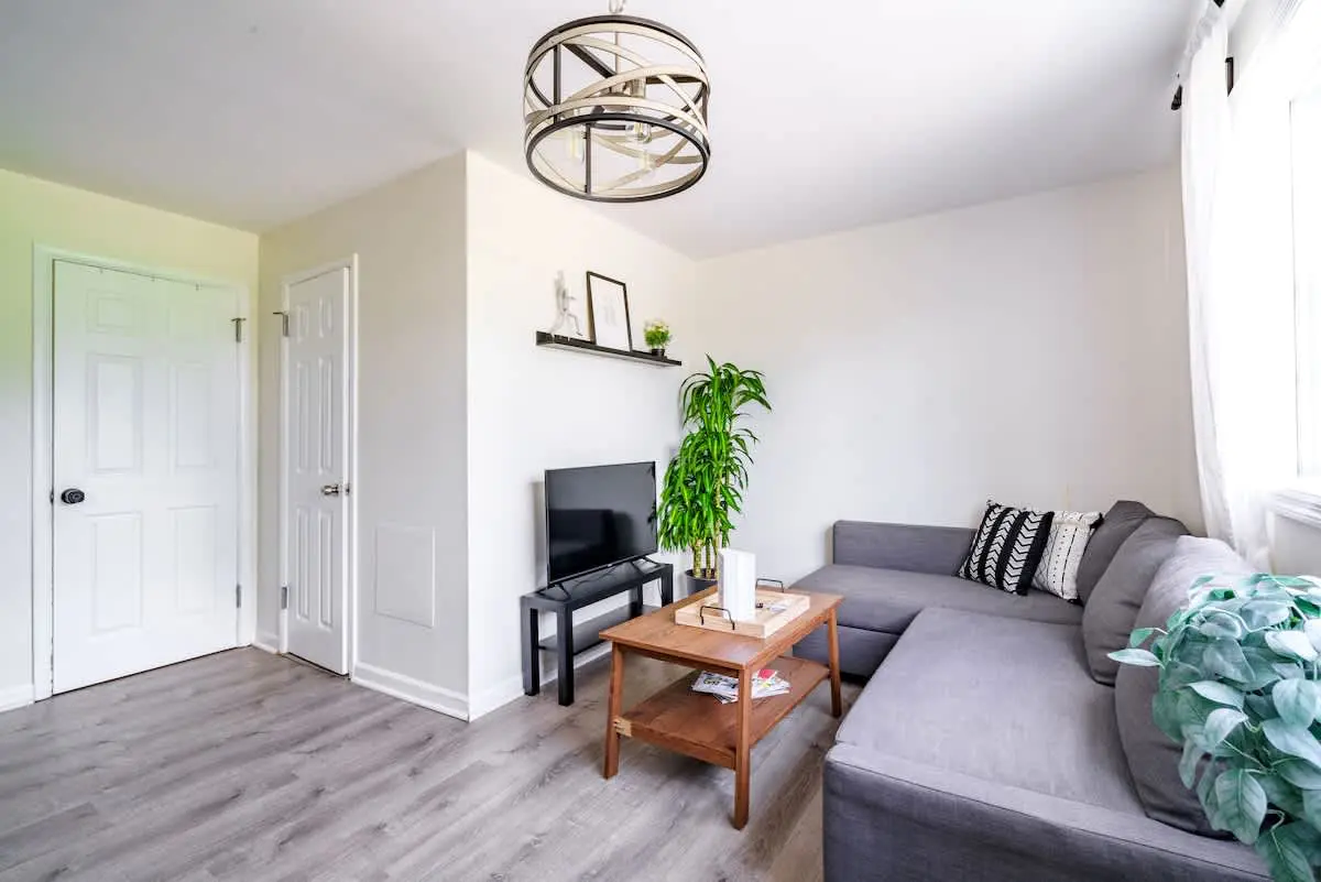 Each floor has 2 units, & your unit is located upstairs! Expect a stairway 😀 Your home contains the living room space, bathroom & kitchen area. It also has 1 bedroom with 1 Queen sized bed, & queen air mattress .