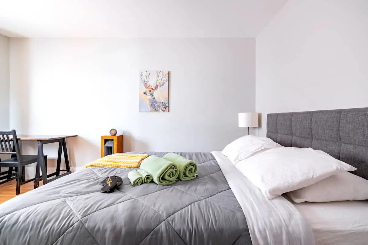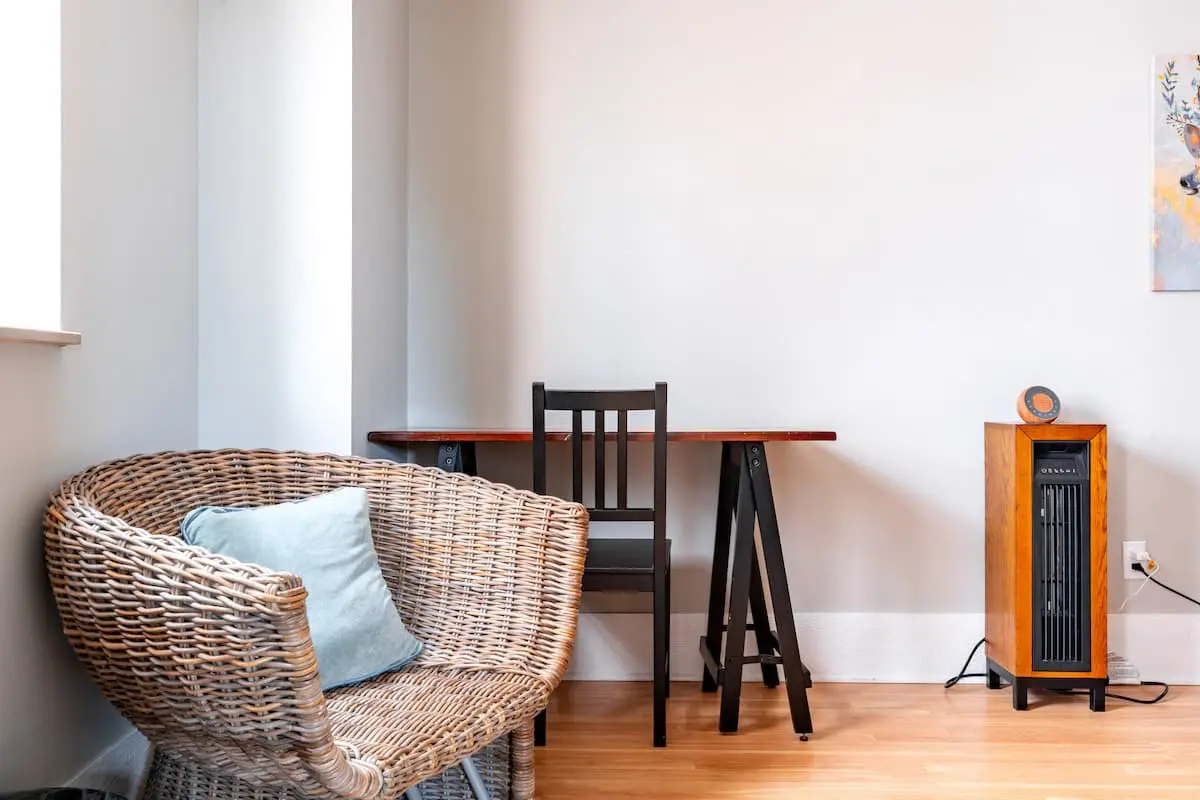 Our home is centrally located downtown and shares a wall with the neighboring unit, so some city or neighbor noise is possible. To ensure a restful stay, weโve provided white noise machines and fans in every room for light sleepers.