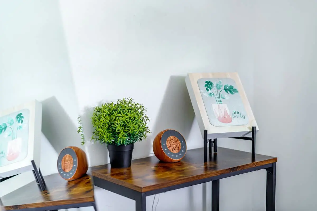 ✅ Two noise monitors (one in the living room, one in the kitchen) that measure noise levels only—no recording, just peace of mind.